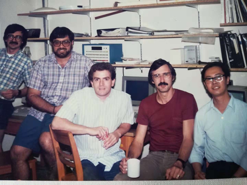 王培德在美国纽约州立大学攻读博士学位时和老师、同学在一起。
