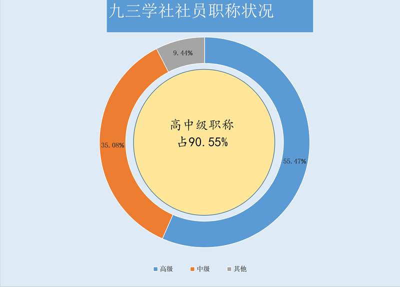 55%的九三学社成员具有高级职称,35%具有中级职称,也即90%以上都具有中级以上职称,是名副其实的高知群体。